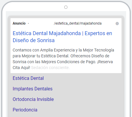 En cuanto a los anuncios dentales estos deben ser llamativos para que el usuario haga clic. Más abajo te explicaré un poco mejor cómo deben ser los anuncios ;).
