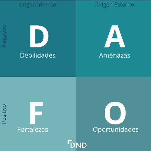 Es una herramienta que nos ayuda a analizar nuestra situación atendiendo a factores internos y externos. También es habitual referirnos a él como matriz o análisis FODA y su nombre es un acrónimo de las palabras Debilidades, Amenazas, Fortalezas y Oportunidades. Estos son los cuatro puntos en los que centraremos nuestro análisis.